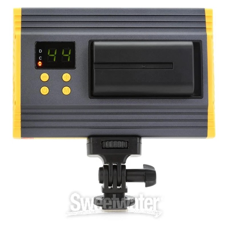 Bring the power of professional-grade LED lighting to your filming setup with the OYB120 aluminum on-camera light from Ikan. This adjustable attachment features 144 high-brightness LEDS, which provides industry-standard, bi-color lighting at 100-watt incandescent light equivalency. It’s adjustable from 3200K to 5600K and features 10% to 99% controllable dimming settings for dialed-in performance on any set. Simply access the OYB120’s navigable LED display and quickly find your preferred light output for easy, on-the-spot illumination changes. As Sweetwater videographers have discovered, the included hot shoe and battery charger make this light a cinch to integrate into your setup.