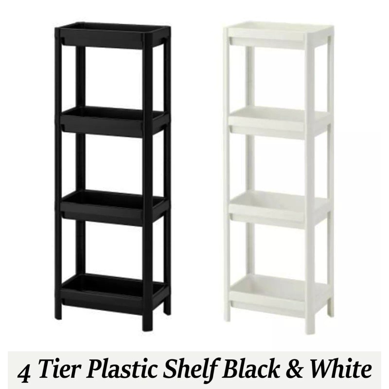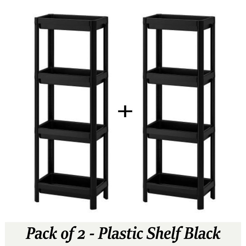 IKEA 4 Tier Plastic Shelving Unit White Black Kitchen Bathroom Organizer Corner Shelf - 2 x 4 Tier Black Stand