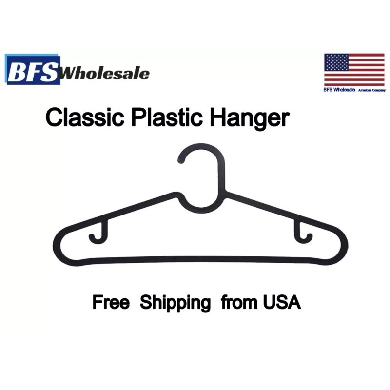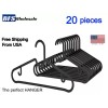 Plastic Strong Standard Spruttig HANGER , 20 pieces, Elegant Black color, Size 15 1/4” x 7 1/4” x (3/8” x 5/32”) thick, Modern Elegant Design, Durable, Lightweight, for Clothes, Coat, Pants, Shirts, Dress, BFSEALS, Free and Quick delivery from USA.