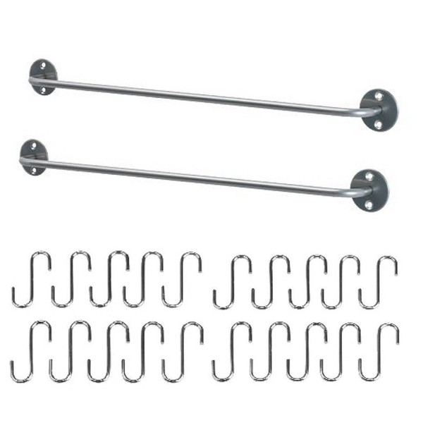 Ikea Steel Kitchen Organizer Set, 2 Rails and 20 Hooks, Silver