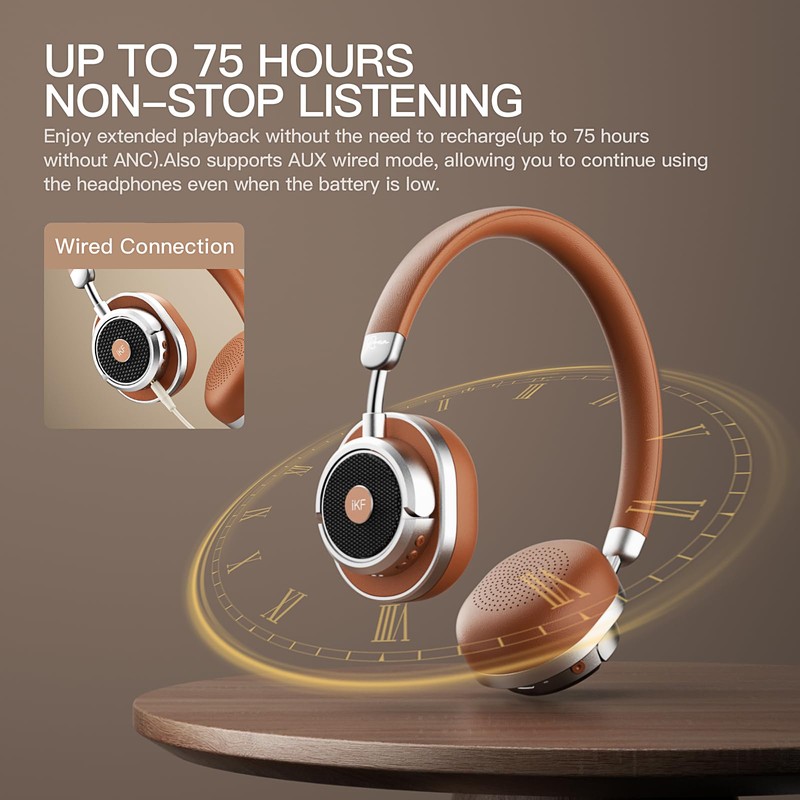 - Luxurious Comfort & Timeless Design: With a metal frame and leather headband, these headphones offer a secure, pressure-free fit. The blend of metal and leather adds sophistication, while the retro-inspired color scheme fuses classic fashion with modern style.