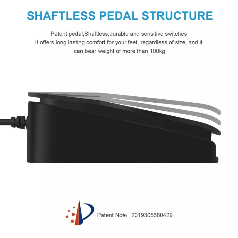 - This foot pedal is build with durable, sensitive switches providing you with an easy touch response and minimal resistance. The ergonomic design with a wide pedal and the large size enables you long lasting comfort for your feet, and it can bear weight of more than 100kg.
