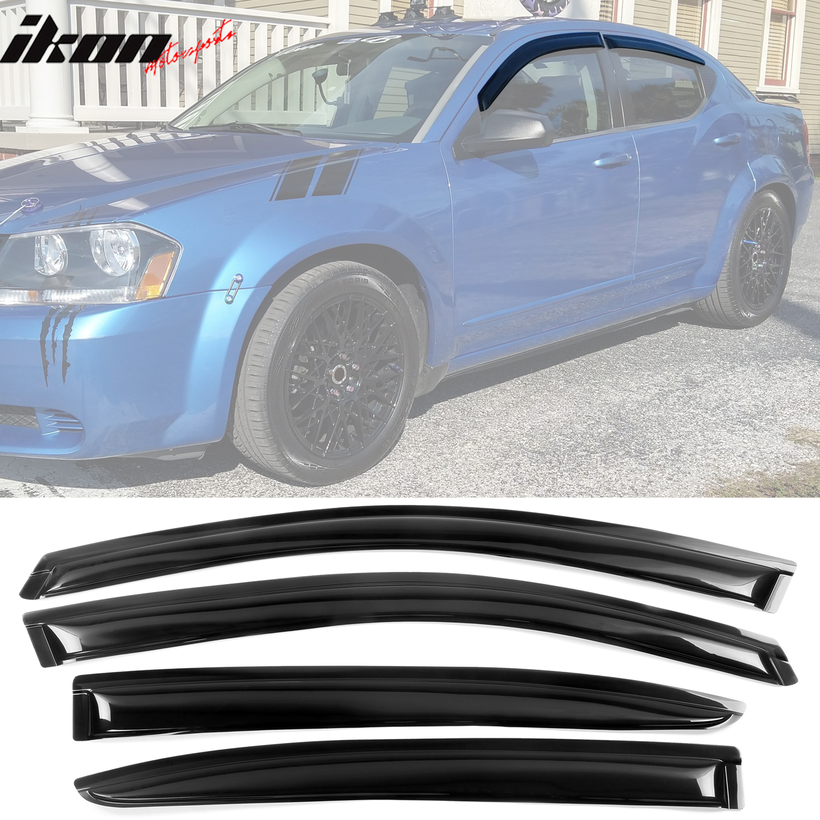 IKON MOTORSPORTS Fits 08-14 Dodge Avenger Acrylic Window Visors Sun Rain Guards Deflector 4Pc Set