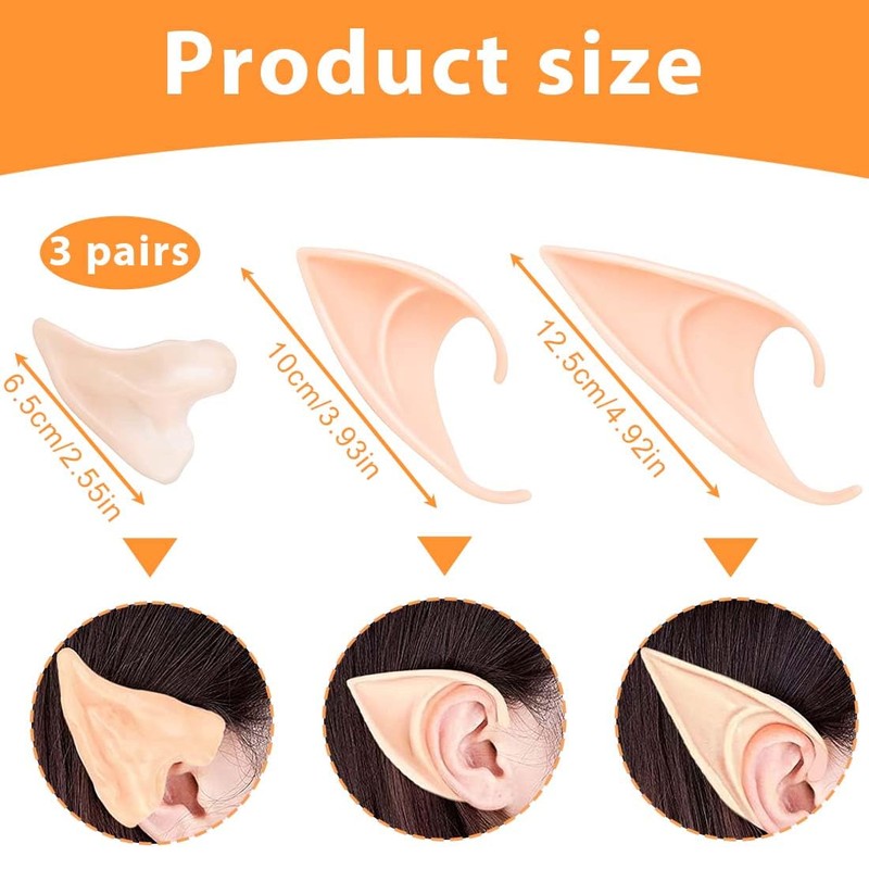 - Quantity: the set includes 3 pairs of elf ears of different sizes and comes with a set of ear stickers to add more stability and comfort to your outfit. Fits most ears and meets different dressing needs such as fairy, elf, devil, etc.