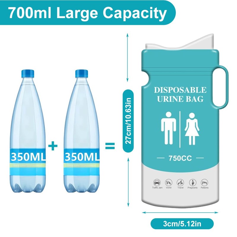 - Hohe Kapazität mit sicherem Verschluss: Jeder Urinbeutel fasst bis zu 750 ml und ist mit einem dichten Zip-Verschluss ausgestattet – für sichere und mehrfache Nutzung möglich.