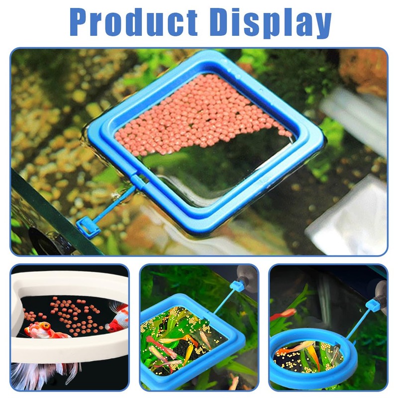 IKOPFLN Pack of 5 Fish Tank Feeders Feeding Ring Fish Tank Feeder Aquarium Accessories Fish Feeder Square and Round Fish Food Ring, blue