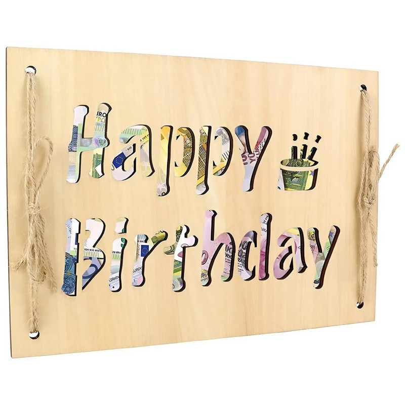 IKOPFLN Wooden Money Gift - Creative Birthday Gift - Happy Birthday Wooden Sign for Men & Women - Perfect Decoration for Birthday Parties, multicoloured