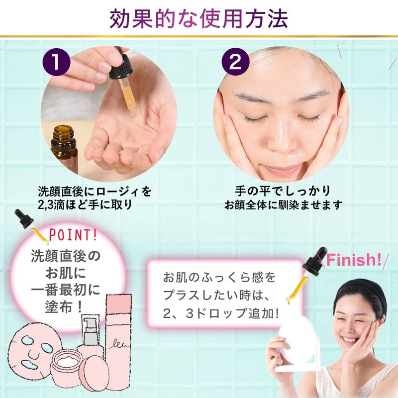 Apply after washing your face and before applying lotion or emulsion. Only 2 drops per use. If you are concerned about dryness or cosmetics, please add 2 drops.