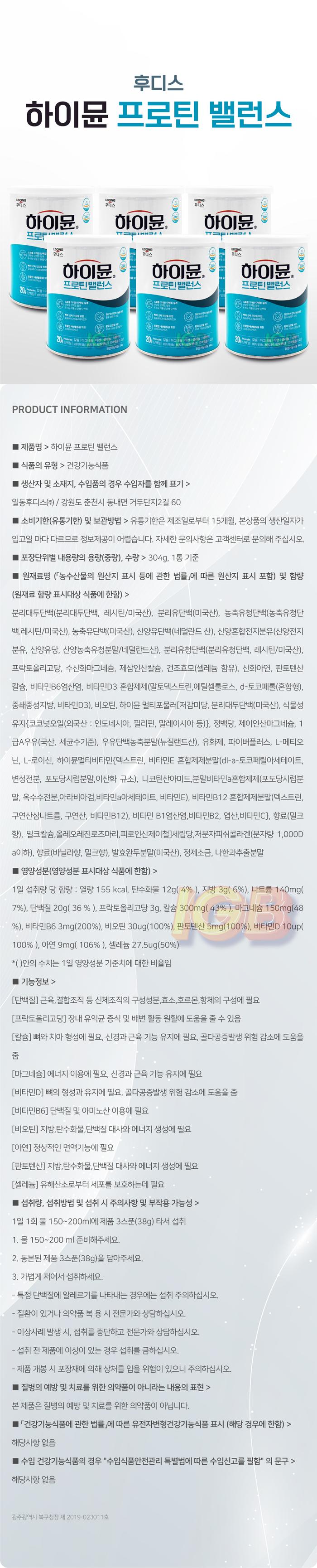 [Ildong Foodis] Foodis Hymune Protein 304g 6 packs / [일동후디스] 후디스 하이뮨 프로틴 304g 6통