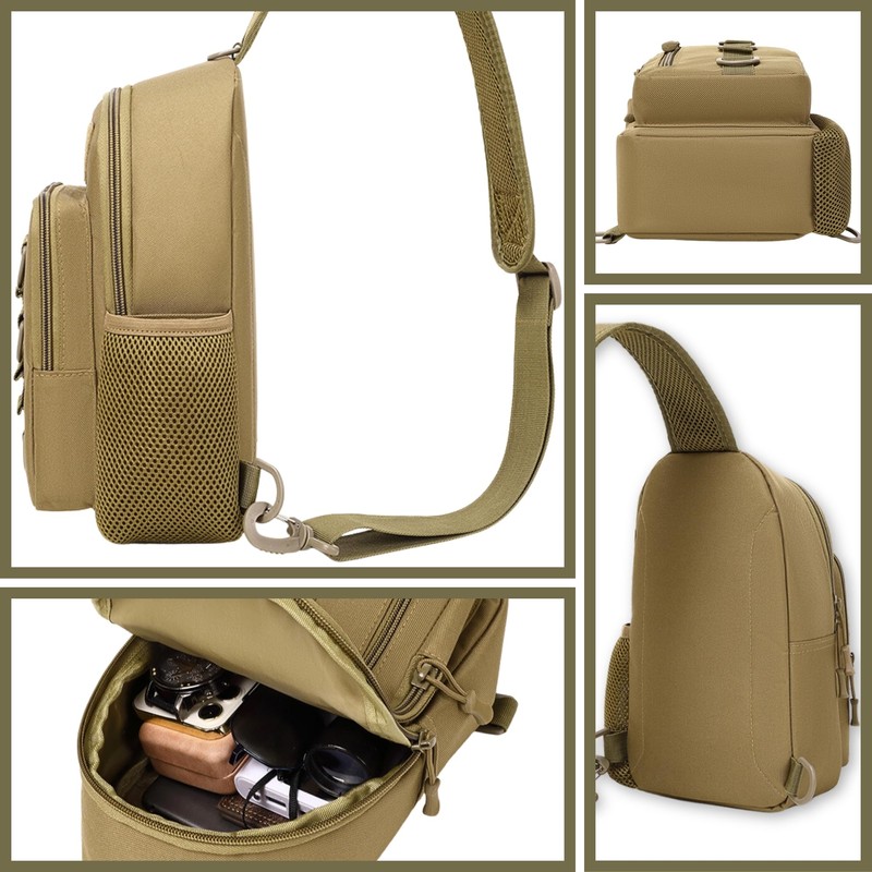 - Ajuste ajustable y compatibilidad Molle: la correa cruzada ajustable permite un ajuste personalizado, asegurando la máxima comodidad. Además, la bolsa cuenta con correas Molle, lo que permite a los usuarios fijar equipo o bolsas adicionales para una funcionalidad ampliada. Esta adaptabilidad hace que la bolsa sea adecuada para una amplia gama de escenarios al aire última intervensión.