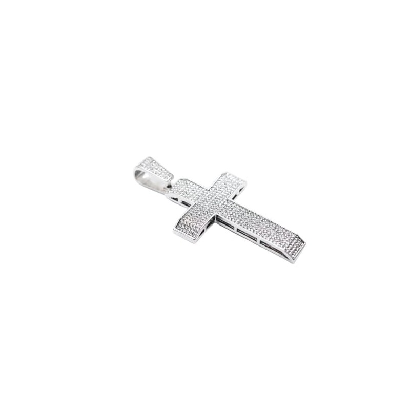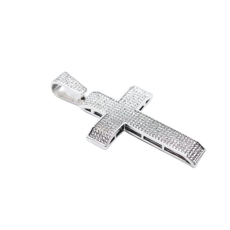 ilhuihui Men's Oversized Silver Cross Pendant Necklace - Thick Cuban Chain with Cubic Zirconia, Bold Gothic Hip Hop Jewelry
