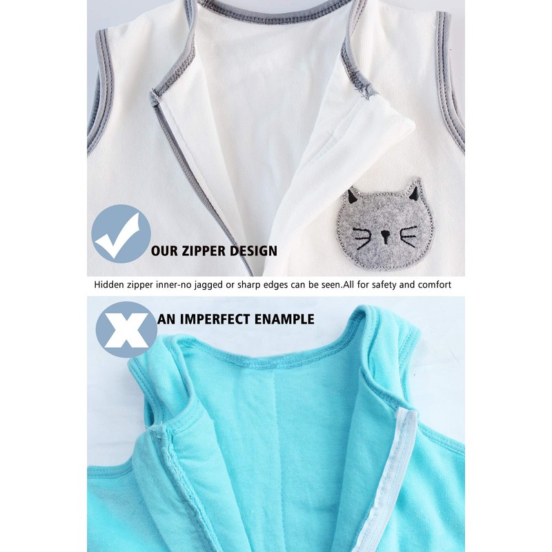 ililmmoe Baby Unisex Sleeping Bag with Feet, Pyjamas, Infant Walking, Cotton Sleeping Bag, Portable Blankets, Lining Made of Cotton Clip, 1.5 Tog, White Cat, L, 100 cm