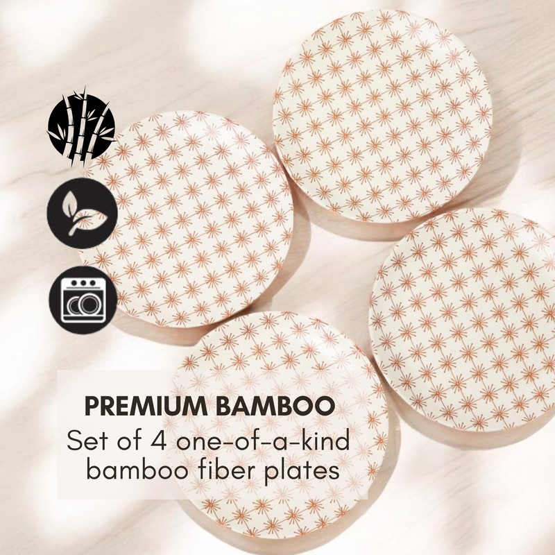 ilohaus 4-Pack 8" Bamboo Fiber Dinner Plates - Unbreakable Plates Alternative to Plastic Plates, Ceramic Plates, Food-Grade Bamboo Plates Reusable, BPA Free, Kids Plates (Sparkle)