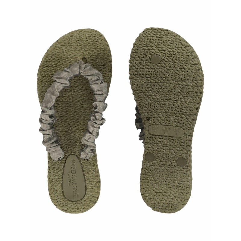 Ilse Jacobsen Women's - Slipper - CHEERFUL06 - Lightweight Toe Separator with Massage Sole Strap with Shiny Fabric, Army, 41 EU