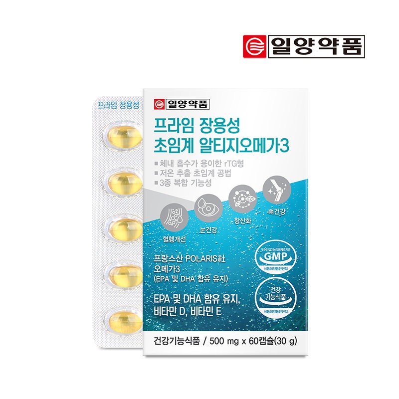 Ilyang Pharmaceutical Prime Enteric Coated Low Temperature Supercritical Altige Omega 3 60 Capsules 1 Box / 일양약품 프라임 장용성 저온초임계 알티지 오메가3 60캡슐 1박스
