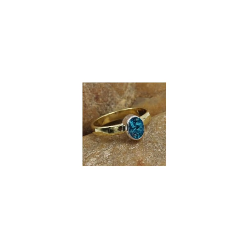 - SPEZIFIKATIONEN: - Ringfarbe: Silber, Gewicht ca. (gms) : 2.5, Ringbandbreite ca. (mm) : 3, Edelstein : Im Labor gezüchteter blauer Topas / Steingröße : 5x7 mm / Steinform : Oval, Andere Metalle : Brass