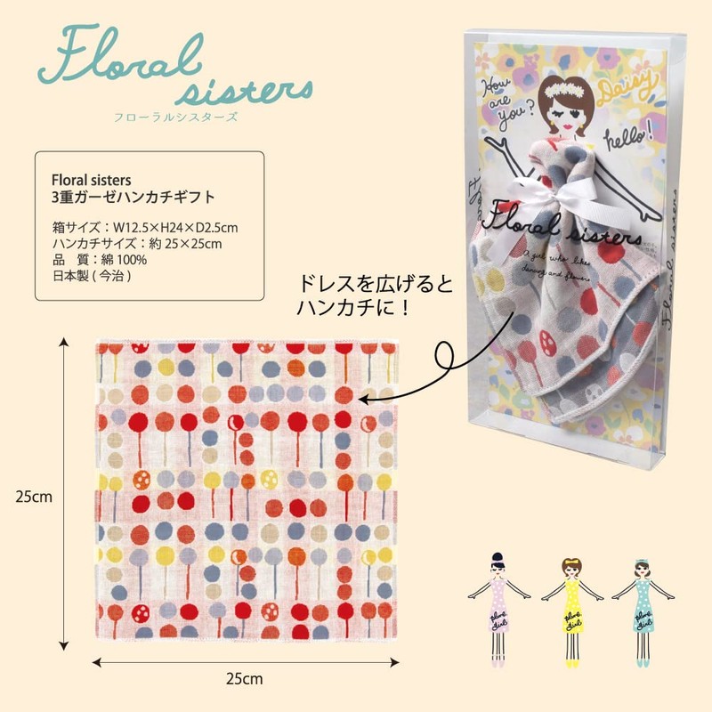 Imabari Towel, Handkerchief, Triple Gauze, Gift (Daisy x Candy with Stick), Made in Japan, Clear Box Type