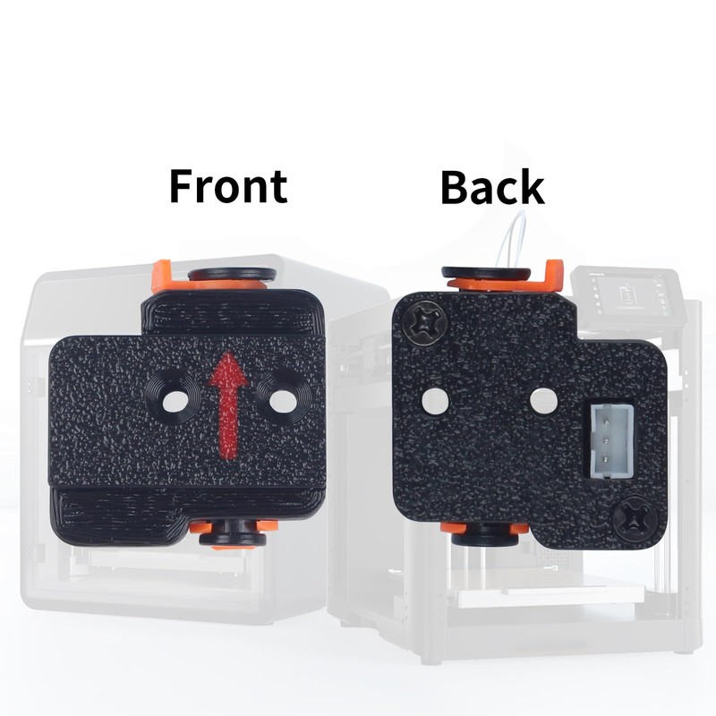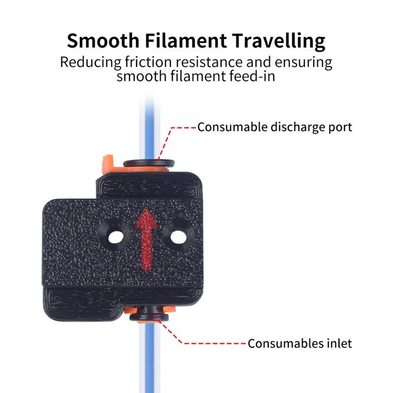 Please pay attention to the order of wiring, the direction of passage of the consumables: the direction of the red arrow on the print part enclosure, ptfe guide tube connector at both ends, to ensure the smooth passage of the 1.75mm filament(such PLA,PETG/ABS/TPU/ASA etc)during the installation process,