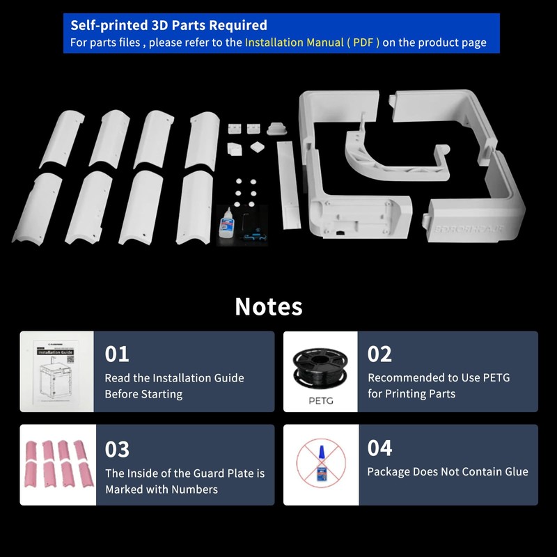 • Note: The kit does not include prints. You need to download the STL file according to our instruction guide and print it by yourself, PETG filament is recommended