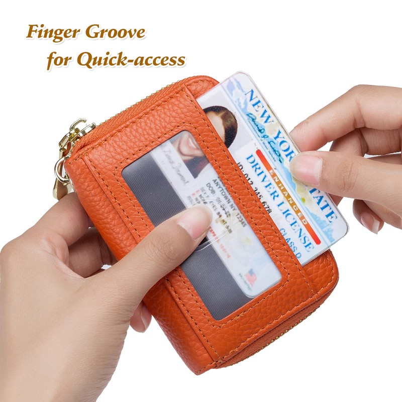 imeetu RFID Credit Card Wallet, Genuine Leather Zipper Card Case Holder with Removable Keychain(Orange)