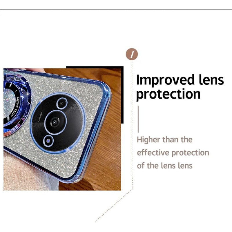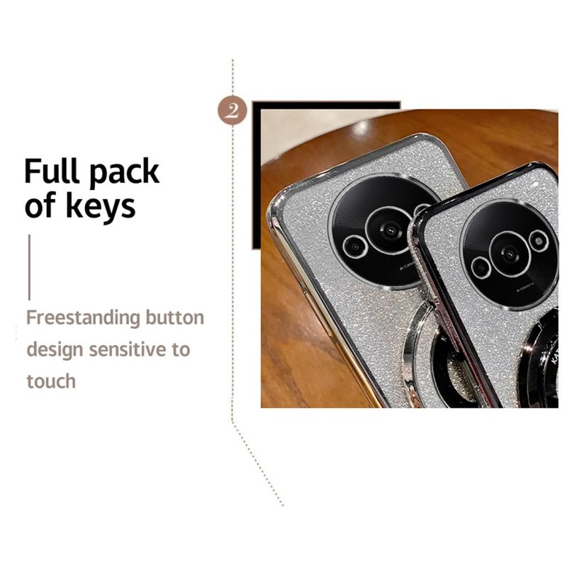 IMEIKONST Glitter Case for Redmi A3 4G, Electroplate Flash Shell for Girls Women Ring Stand Function Camera Protector Shockproof Transparent TPU Cover for Redmi A3 4G. Purple DS1