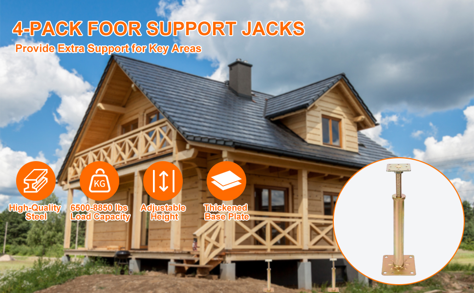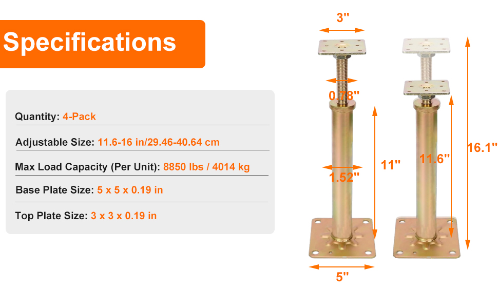 iMeshbean 4PCS Adjustable Floor Jacks Post House Floor Leveling Lift 11"-16" Height Range