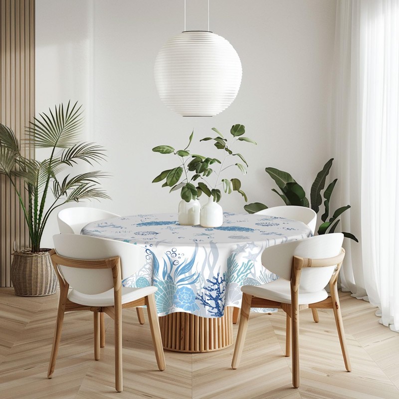 - ♦【Elegant Unique Design】The nautical coastal table cloth will bring of tropical party into your home visually. Whether you use this traditional tablecloth for a party or family dinner, it’s sure to bring a touch of holiday charm to any dining tablescape. It also enhances the overall beauty of the dining area.