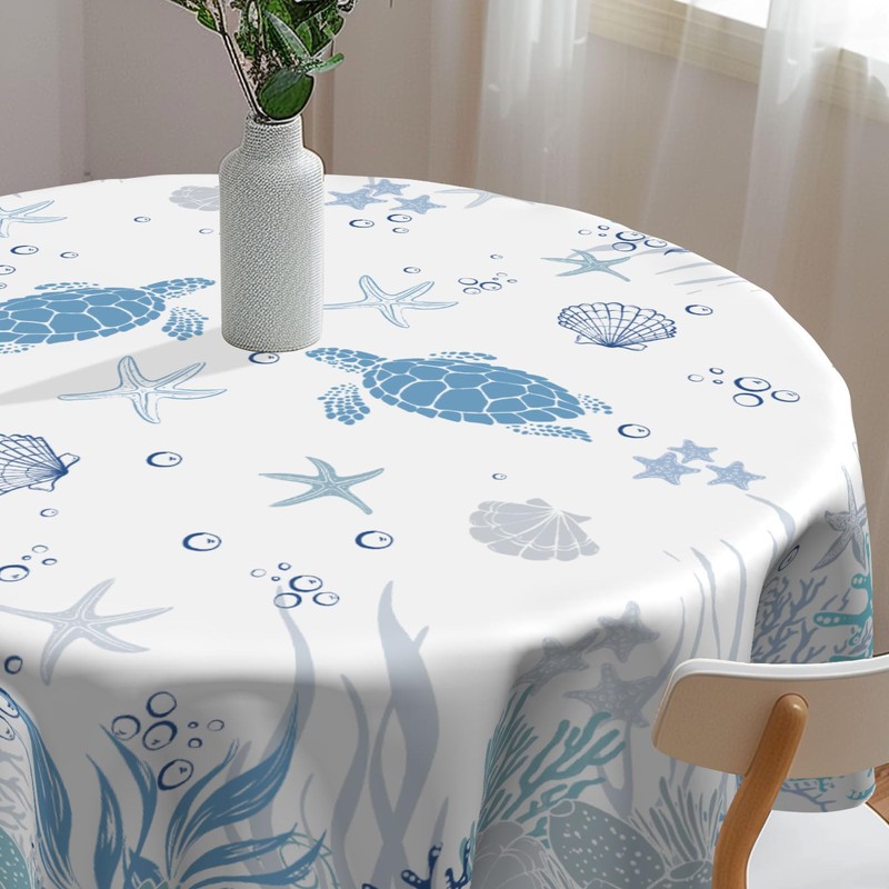 - ♦【High-Quality Tablecloth】The sea turtle blue round tablecloth made from durable polyester fabric, sturdy sewing, soft and durable, protecting your tables and furniture from scratches. Everyday desktop collocation, add different design features to your home decor.