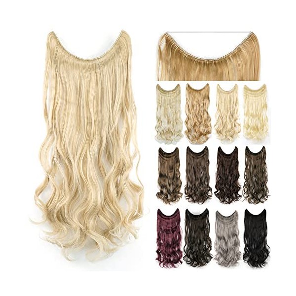 IMISSU 22 / 26 inch Long Body Wavy Hair Extensions Fish Cord Hairpiece Synthetic Invisible Headpiece Flip Curly Hair Extensions Pieces (26 Inches, Beach Blonde)