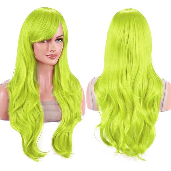 IMISSU 70 cm Long Hair Water Wavy Wigs with Fringe Cosplay Costume Wig (Light Green)