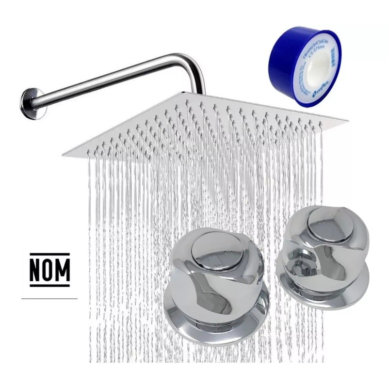 Regadera de Lujo Cuadrada 20cm con Tubo de 50cm y Manerales Metalflu Cromado para Baño