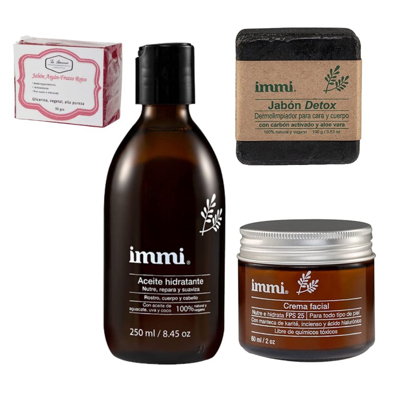 immi Kit Aceite Hidratante Jabón Detox y Crema Facial, 1 Jabon 50gr la Artesanal