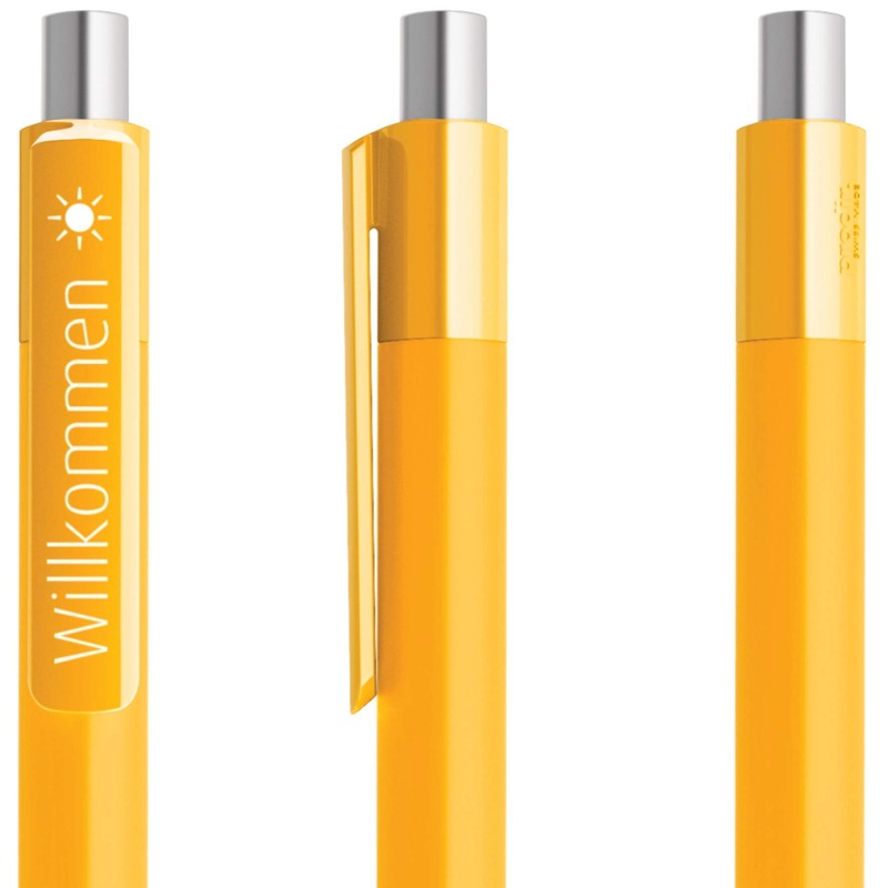 - With the yellow model, the lead cannot be changed. You will receive 1 retractable ballpoint pen, matte surface, polished button, soft touch (soft barrel, very comfortable in the hand)