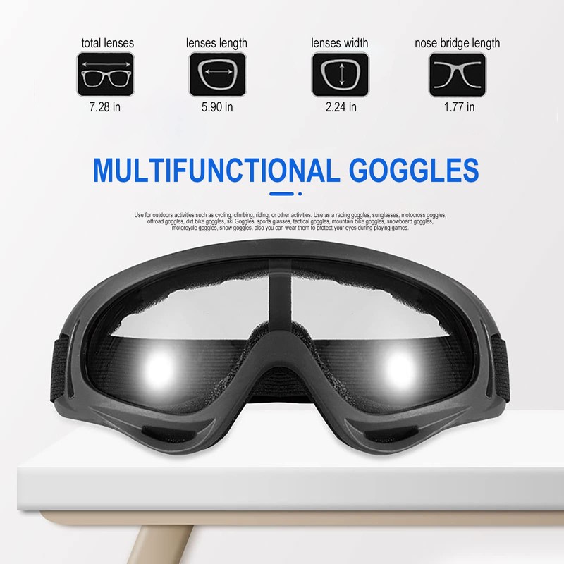 - 10PCS MOTORCYCLE SET - Use these goggles for outdoors activities such as cycling, climbing, riding, mountain bike, running, fishing, skydiving, outdoors and sports, motocross, skating, etc. Use as a racing goggles, sunglasses, motocross goggles, off-road goggles, dirt bike goggles, ski goggles, sports glasses, tactical goggles, mountain bike goggles, snowboard goggles, motorcycle goggles, snow goggles, you can also wear them to protect your eyes during playing games or building work.