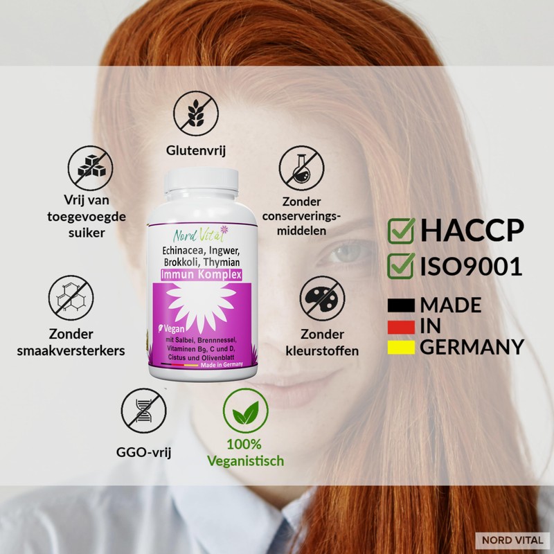 Immune Complex with 15 Active Ingredients - Echinacea, Broccoli, Ginger, Sage, Nettle, Cistus, Olive Leaf, Vitamins C, B9 and D, Zinc and Selenium - German Production