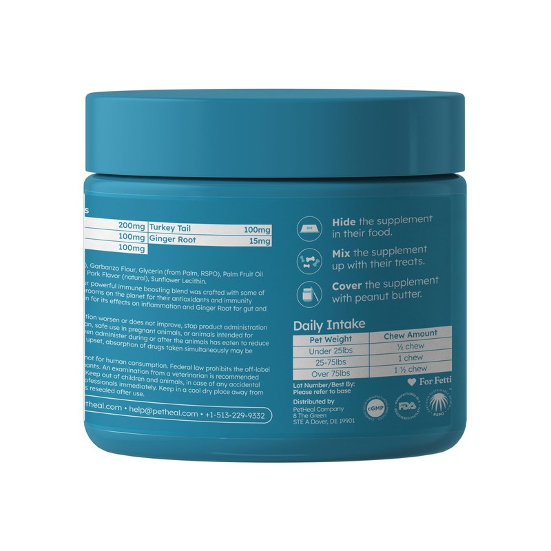 Strengthen Your Dog’s Immunity with PetHeal Immune Plus Canine Your dog’s immune system is their first line of defense. PetHeal Immune Plus Canine is a powerful, vet-reviewed formula designed to enhance immunity, improve energy, and support liver health. Formulated with scientifically backed superfoods, these soft chews promote overall wellness while helping to reduce abnormal cell growth, inflammation, and fatigue.