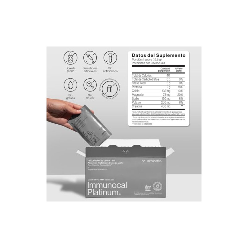 Immunocal Platinum Original, Precursor de Glutatin Aislado de Protena de Suero de Leche, Renovacin Cutnea y Celular, Promueve Huesos Fuertes 30...