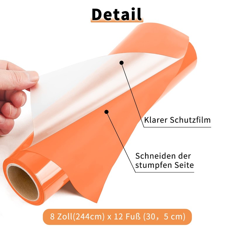 Size and colour: IModeur 12 inches x 8 ft (30.5 x 244 cm) plotter film textile orange for DIY fabric, suitable for all cutting machines such as Cricut machine and Silhouette Cameo. We offer most practical bright colors. Meet all the colours you need for your daily life and create a unique self. Note: It is not a permanent vinyl and does not need to be used with transfer film. Please wait 24 hours before the first wash.