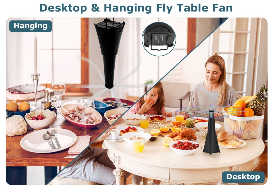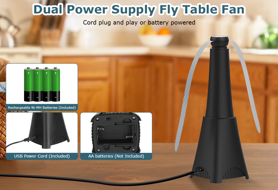 iMounTEK 2 Fly Fans for Tables USB/Battery Powered Fly Repellent Fans w/Soft Blades Hooks