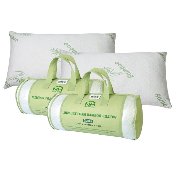 iMounTEK Bamboo Rayon Breathable Memory Foam Pillow with Washable Pillowcase, Premium Pillows for Sleeping – Back/Stomach/Side Sleeper, Bamboo Cooling Bed Pillows (Queen Size) (2-Pack)