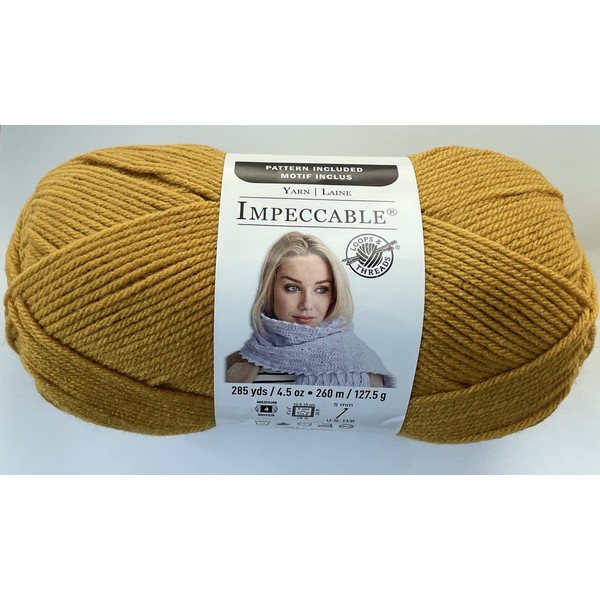 - Loops & Thread Impeccable Yarn colored Gold. One ball weighs 4.5 ounces.