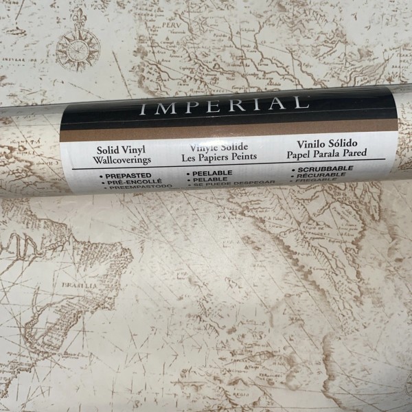 Imperial Vintage Imperial Wallpaper Globe Maps Single Roll Beige/brown 56 Sq. Ft. N.O.S