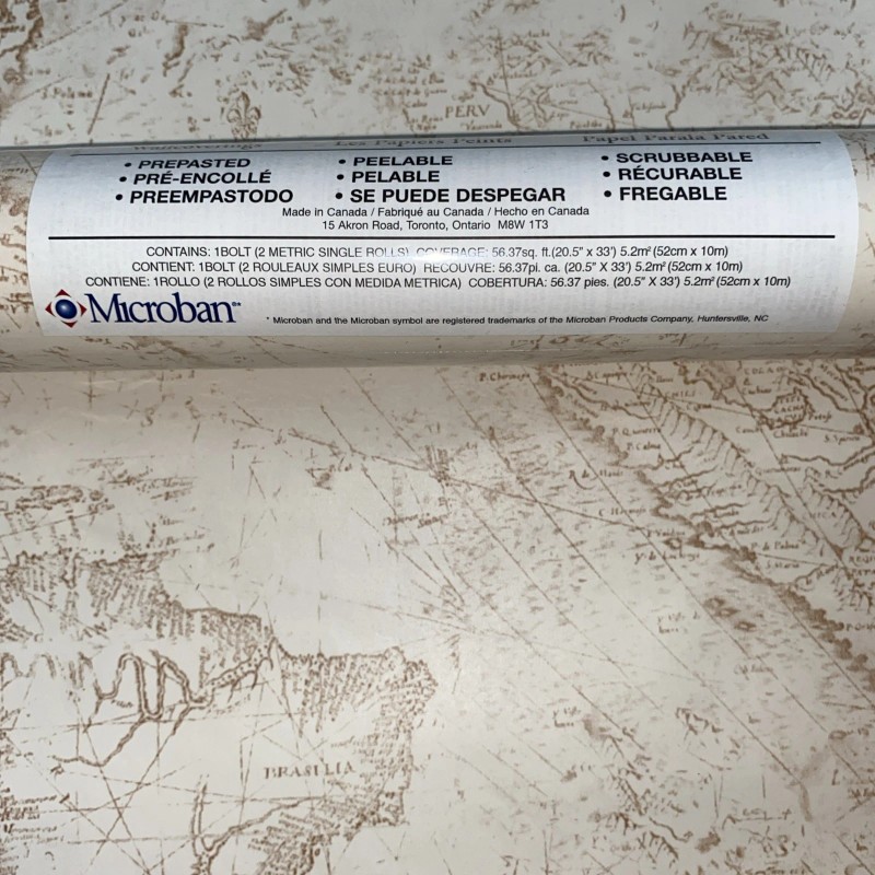 Vintage Imperial Wallpaper Globe Maps Single Roll Beige/brown 56 Sq. Ft. N.O.S