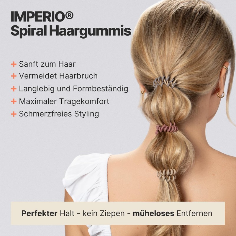 - Gentle on your hair – the special "Care & Coil Technology" of the spiral hair bands ensures even pressure distribution, which keeps your hair gently in shape. The elastic spiral hair band gently grips the hair and can be easily removed without pulling without straining or damaging the hair.