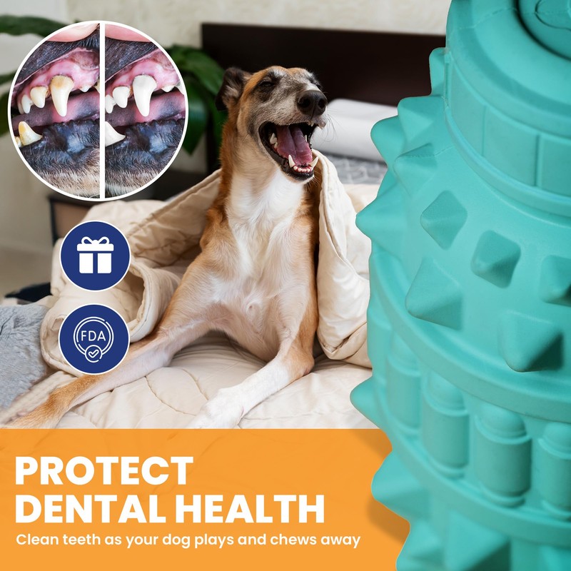 - DEEP CLEANING TEETH The design of our indestructible dog toy is designed to ensure optimal cleaning of your pet's teeth. The irregular texture and soft nubs help reduce the formation of tartar while protecting your pet's gums as well as teeth and teeth. Provide your dog with a practical yet pleasant solution to maintain exemplary oral hygiene
