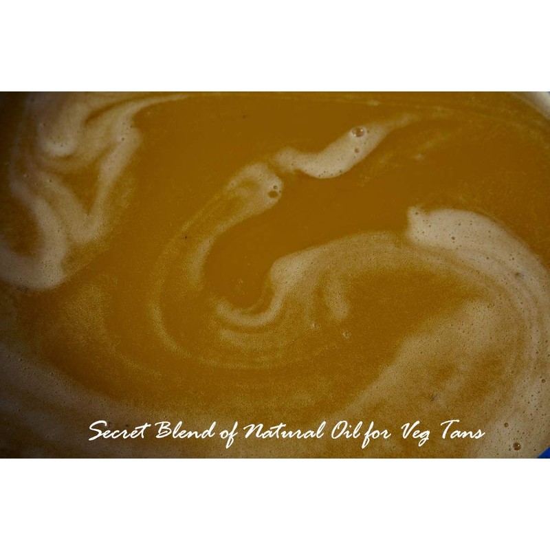 Full-Grain Vegetable-Tanned Leather. Thickness is 8/9 Oz (3.2-3.6 mm). Color is natural. If the leather piece you receive is lighter than you desire, you can set it outside in the sunlight for an hour or two at a time until the correct patina color is achieved! This is living natural leather with vegetable-tanned.