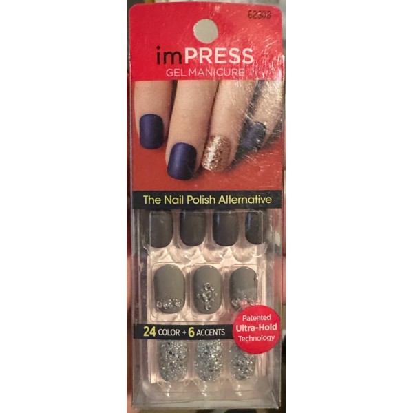 Impress! Impress Gel Manicure Press on Nails Short Gray Jewel accent silver glitter oval