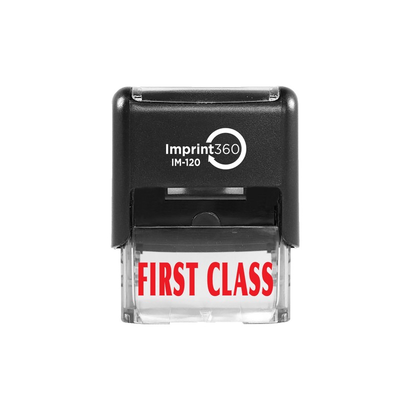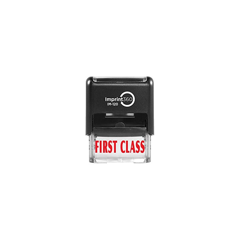 Imprint 360 AS-IMP1025 - FIRST CLASS, Heavy Duty Commerical Quality Self-Inking Rubber Stamp, Red Ink, 9/16" x 1-1/2" Impression Size, Laser Engraved for Clean, Precise Imprints