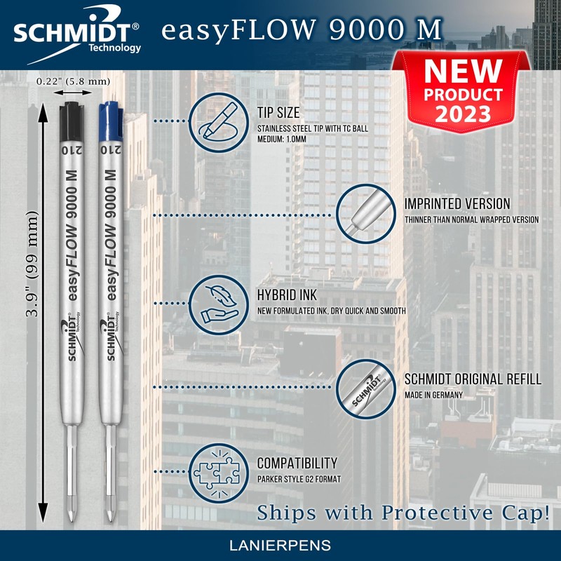 - It is known for its excellent writing. Its writing ink does a very excellent and best writing job which is great!. SCHMIDT easyFLOW 9000 ballpoint refill, stainless steel tip with TC ball including tip protection cap refill writing colours available in Black and Blue. Prepare yourself for an unparalleled writing experience with easyFLOW 9000 ballpoint exclusive refill distributed by Lanier Pens.