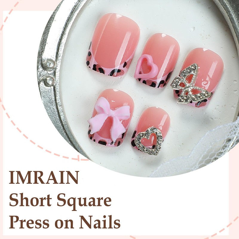 - [Package Content] You will get 24 pieces of IMRAIN short square press on nails, a small clear box with glue, and you can trim it to any length you want~